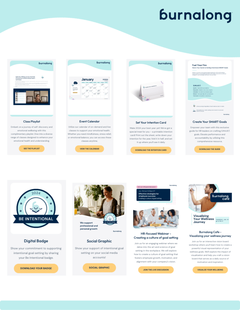 This groundbreaking digital toolkit is designed to empower HR leaders in prioritizing intentions and goals with their workforce. This comprehensive toolkit offers an array of resources, including a carefully curated class playlist, engaging social graphics, and event recordings. With these tools at their disposal, HR leaders can foster a supportive and motivational workplace environment, enhancing the professional and personal objectives of their employees.