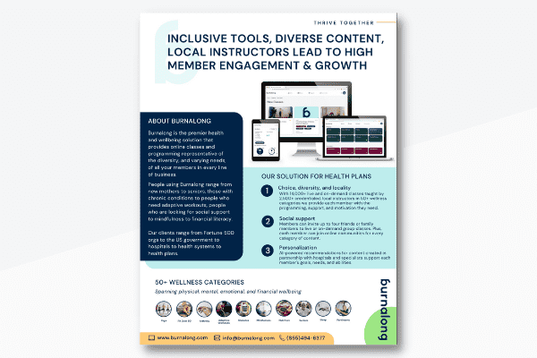 Share this 30-second Burnalong highlights video with your organization to get everyone excited about their wellness benefit!